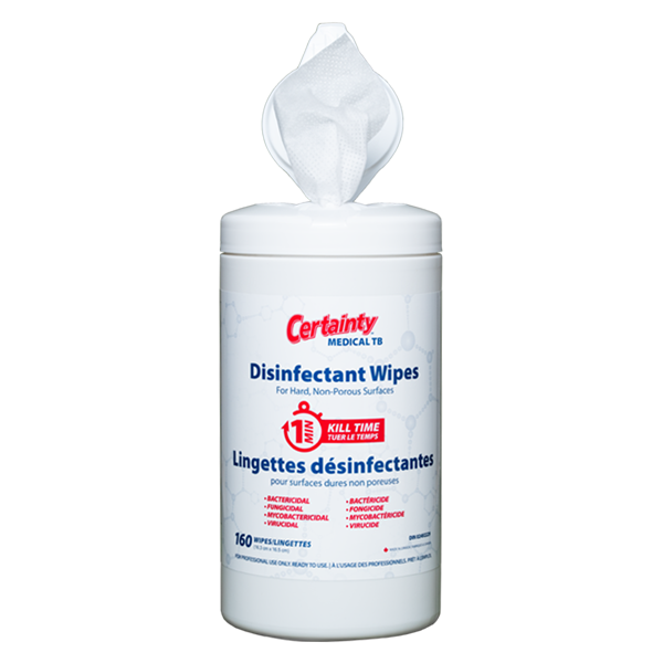 Certainty® Medical TB Disinfectant Wipes are specially formulated for rapid disinfection of hard, non-porous surfaces in just 1 minute! Our fast-acting, ready-to-use wipes eliminate bacteria, fungi and viruses including mycobacterium, one of the most difficult microorganisms to kill. Ideal for medical clinics, doctor offices, long term care homes, and more.